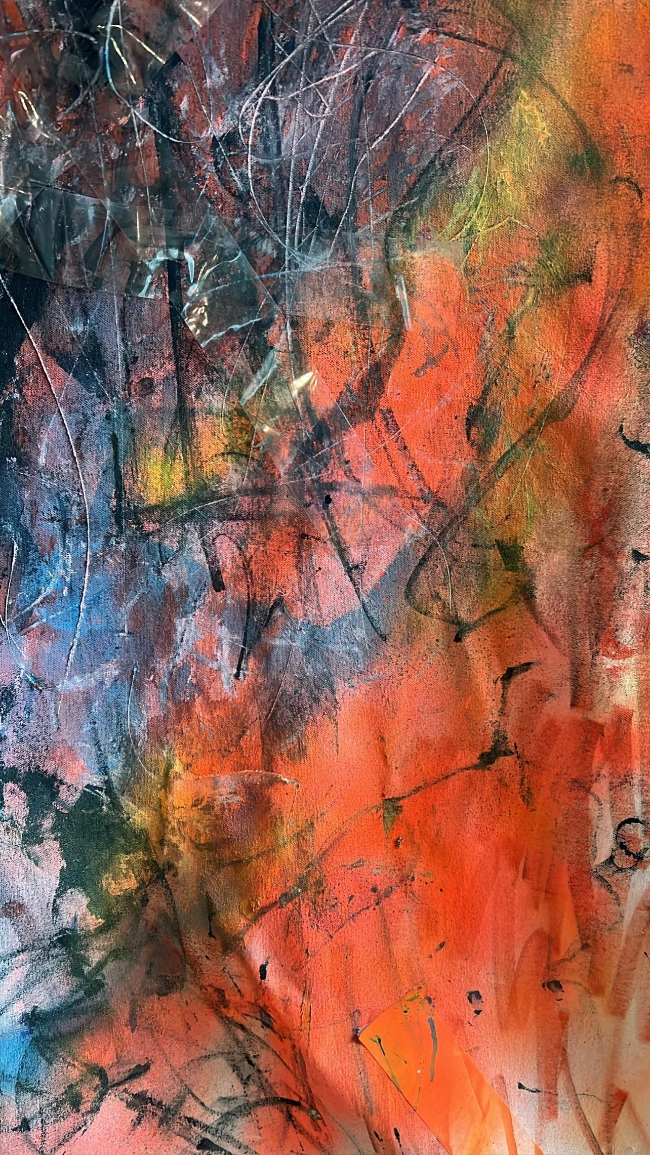 colors. the fields of color colliding with spider-like wisps of black ink are similar to that angular feeling described above.