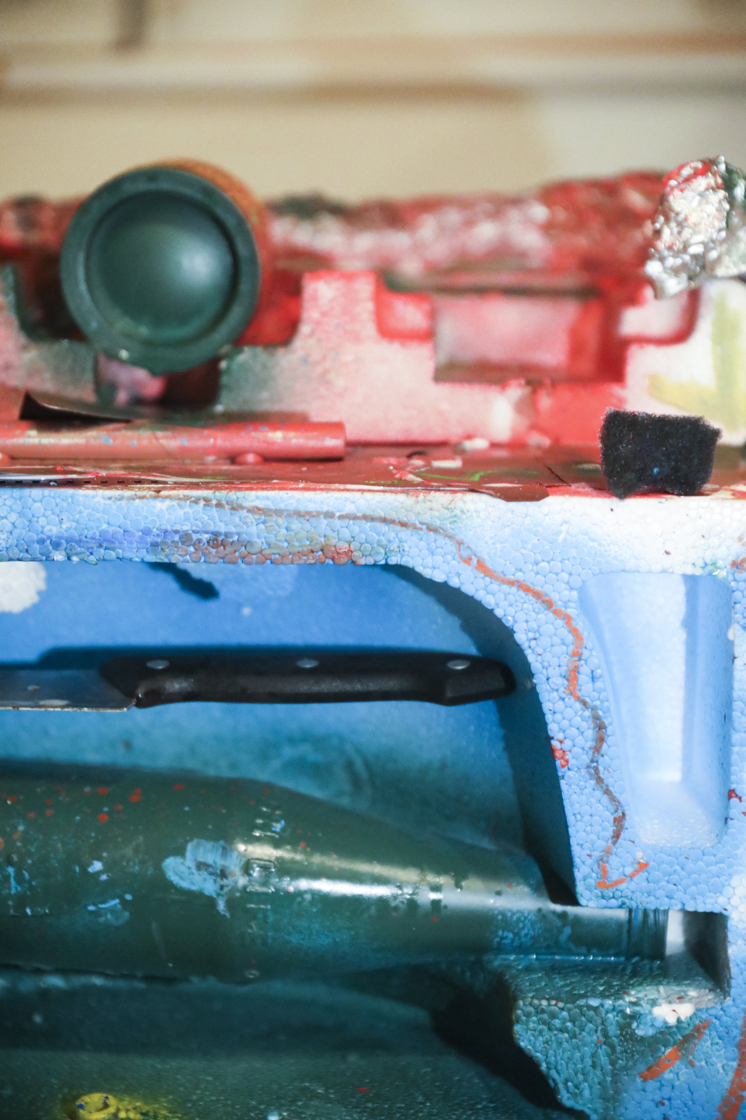 Contrast in the shadow + abstract collagework are great. Great use of color.